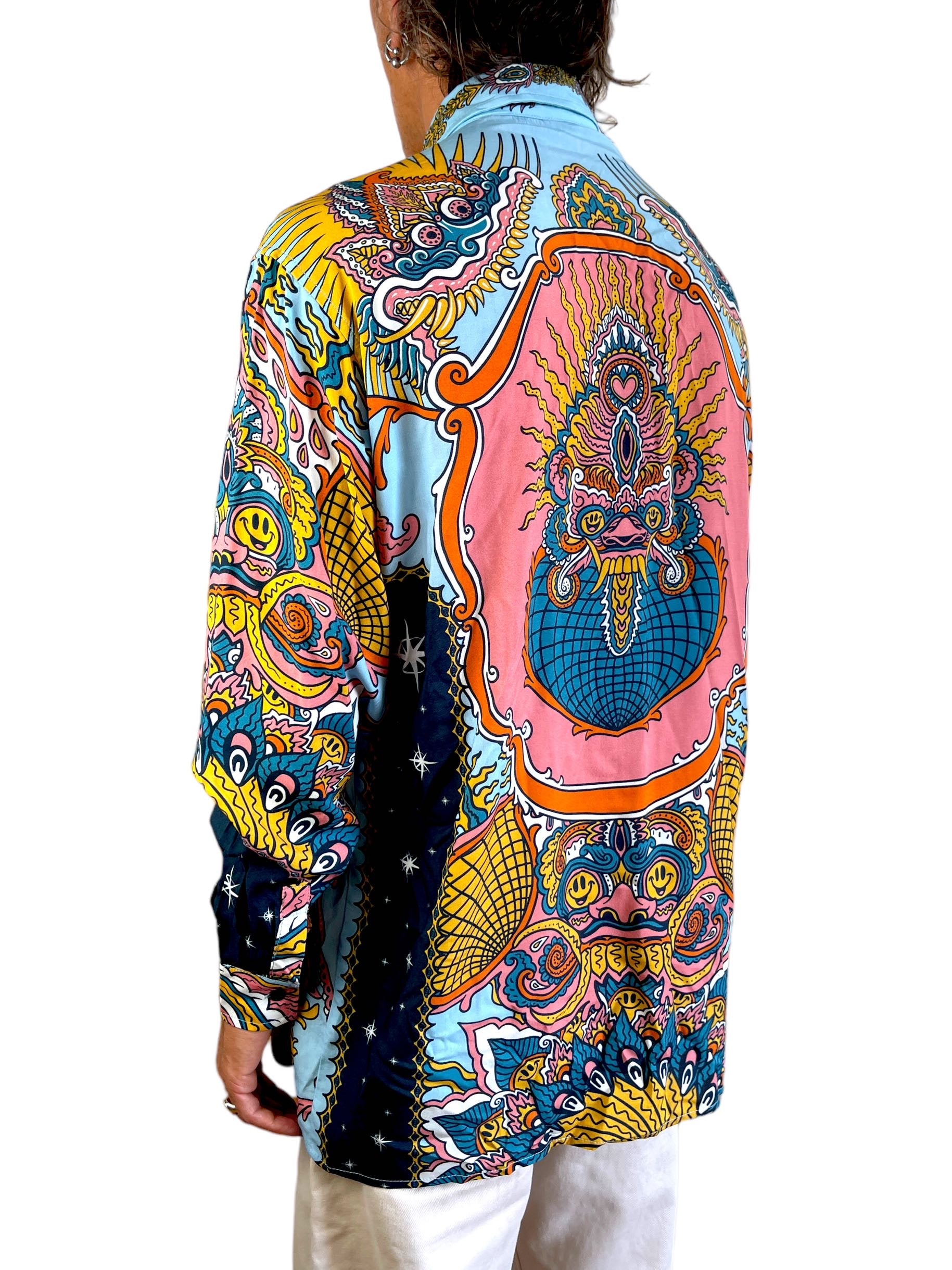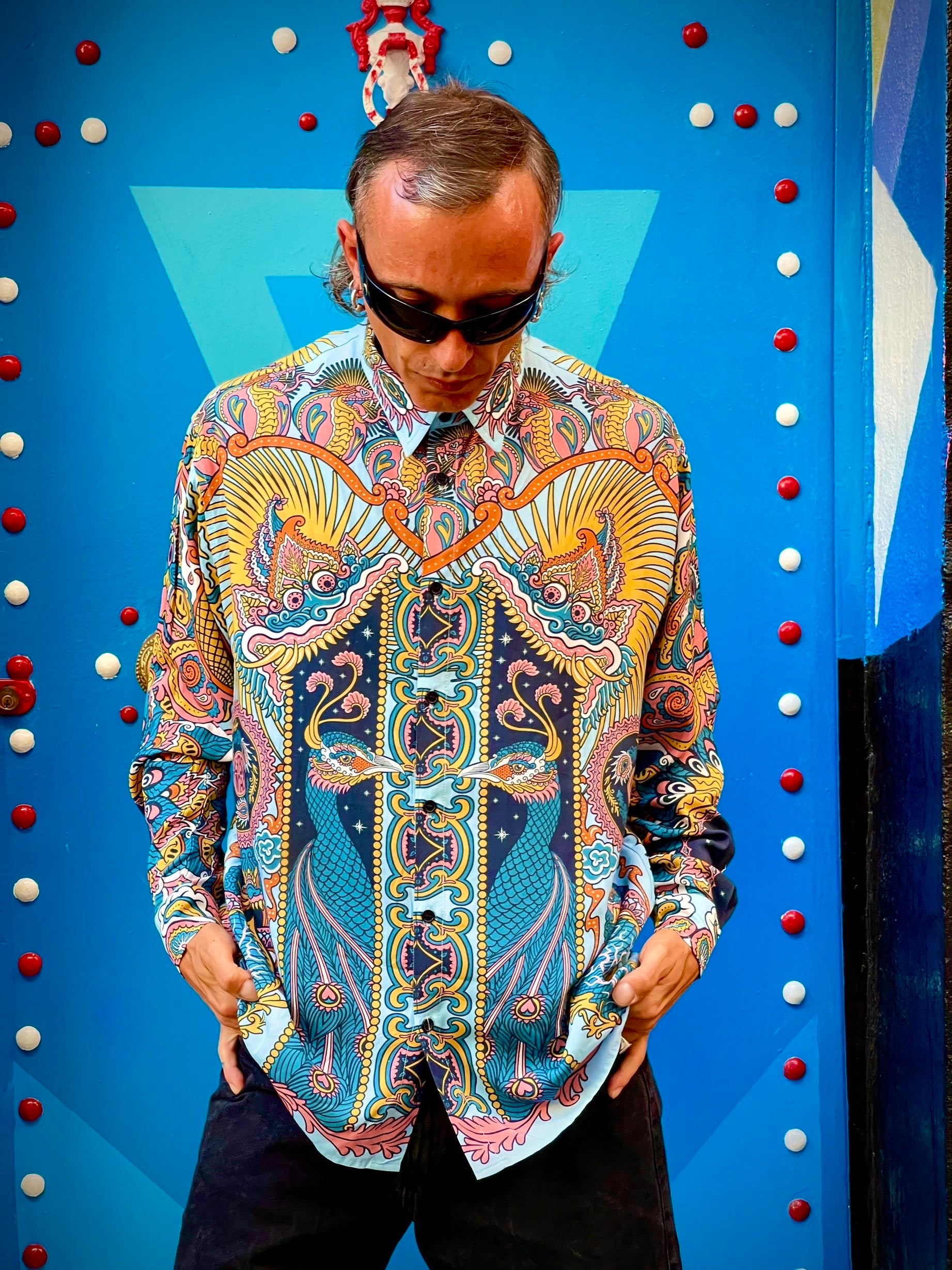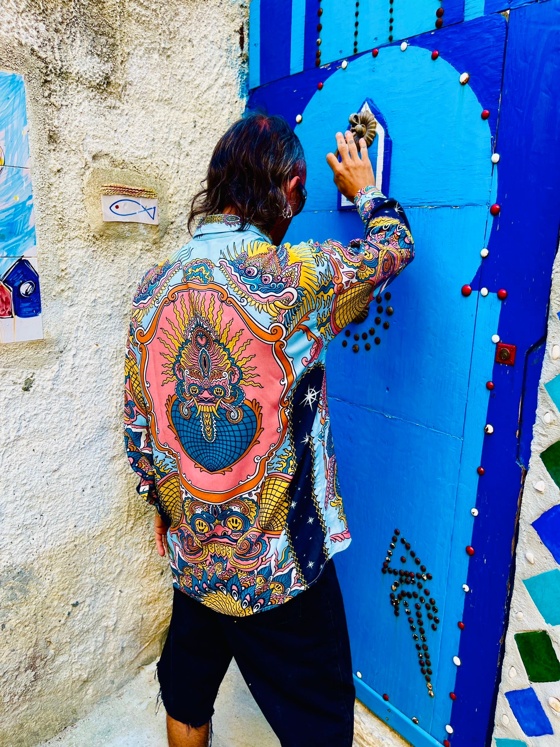 - Placed printing - Our shirts are produced with placed printing, that is, designed directly in the borders of the pattern in order to have full control on where to place each element of the drawing on the shirt. This makes each shirt unique and precious.