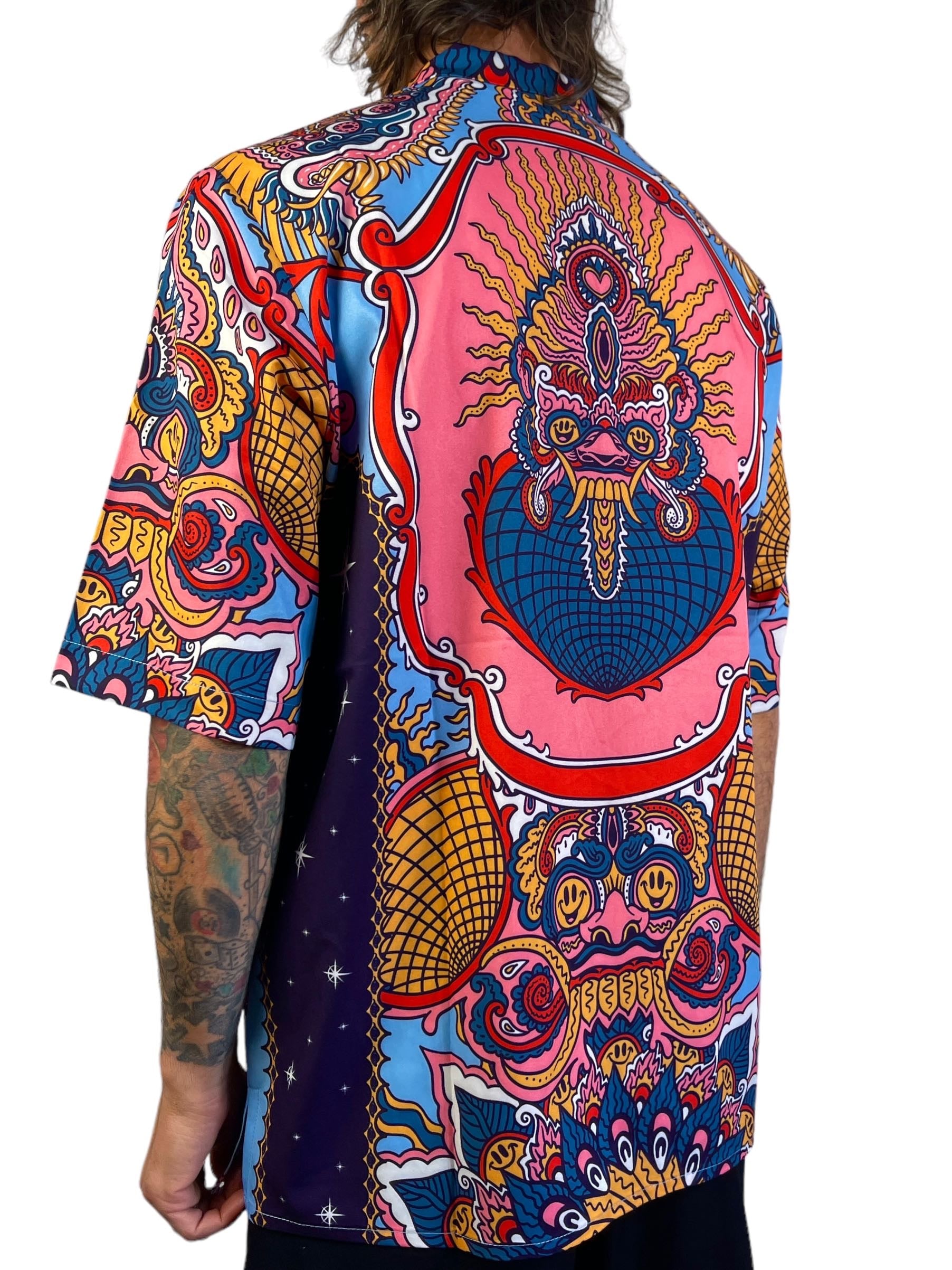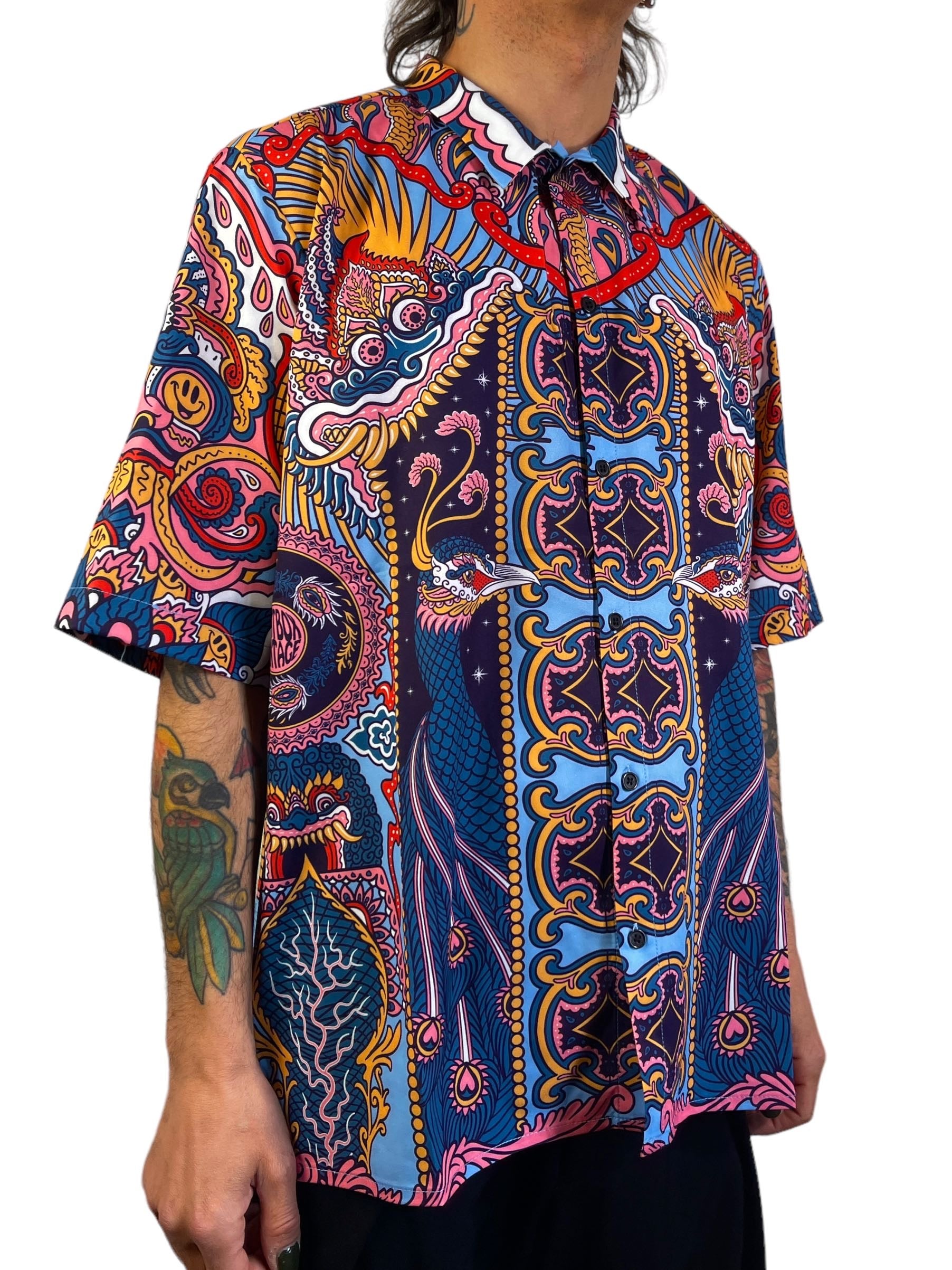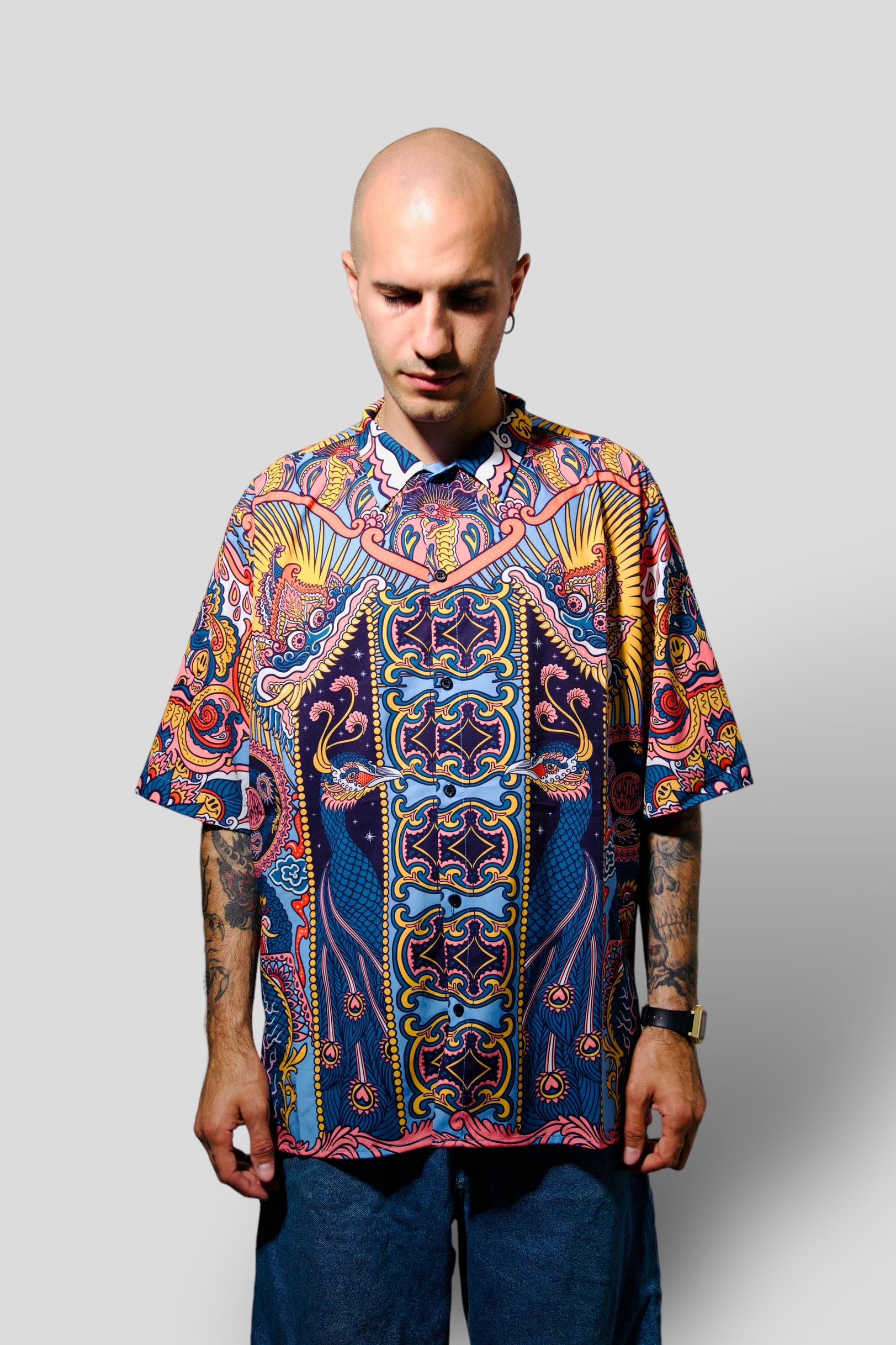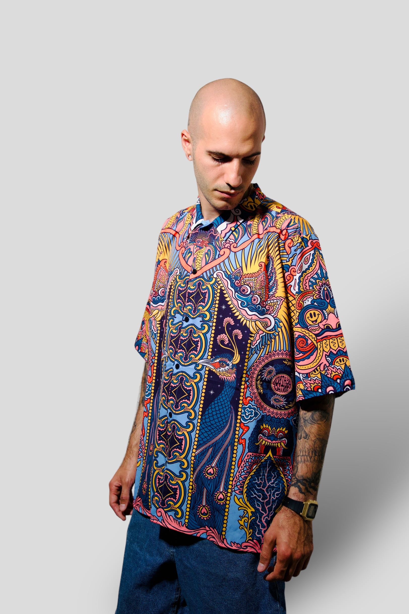 Merak sleeved shirt with beautiful print designed by an Indonesian artist for us.
