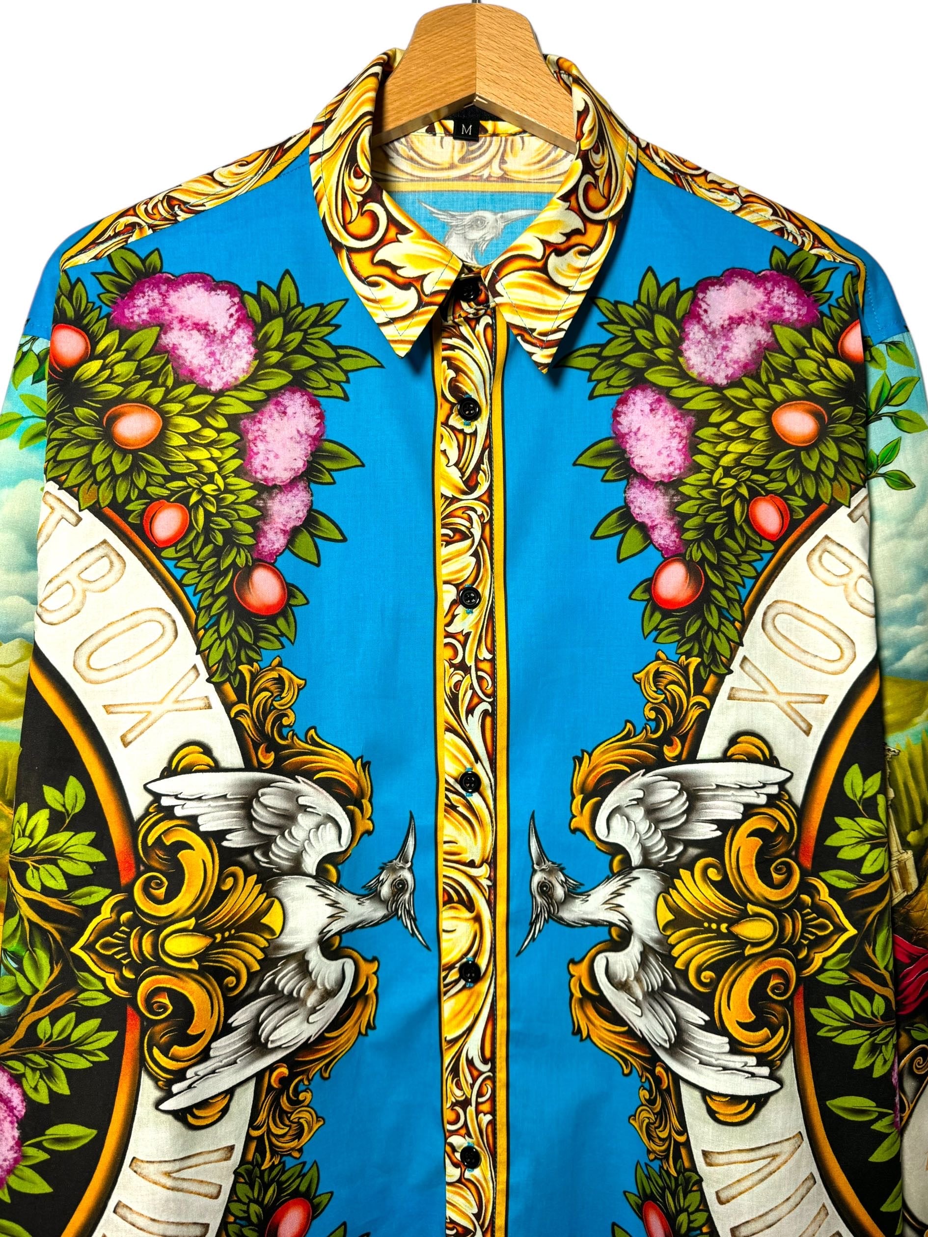 - Placed printing - Our shirts are produced with placed printing, that is, designed directly in the borders of the pattern in order to have full control on where to place each element of the drawing on the shirt. This makes each shirt unique and precious.