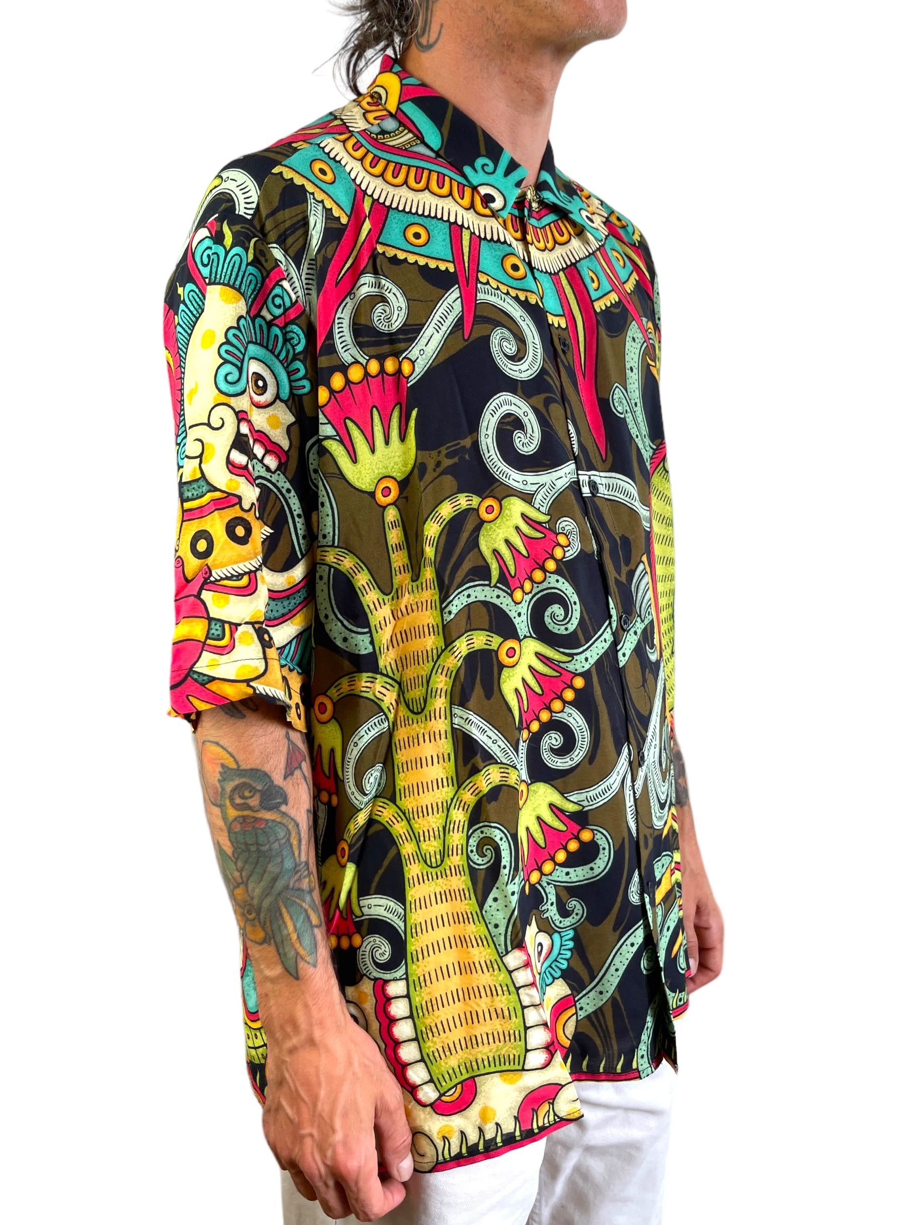 - Placed printing - Our shirts are produced with placed printing, that is, designed directly in the borders of the pattern in order to have full control on where to place each element of the drawing on the shirt. This makes each shirt unique and precious.