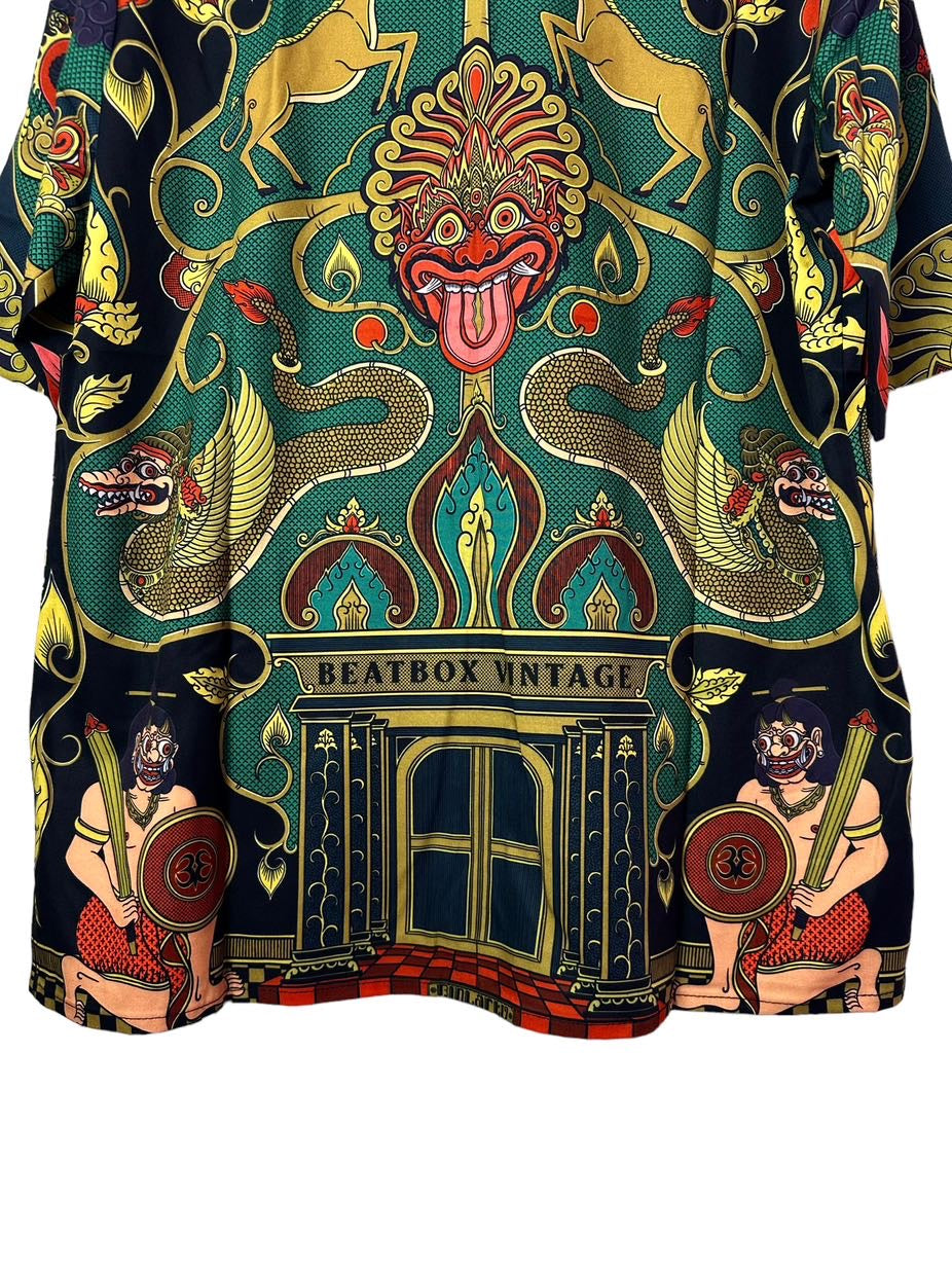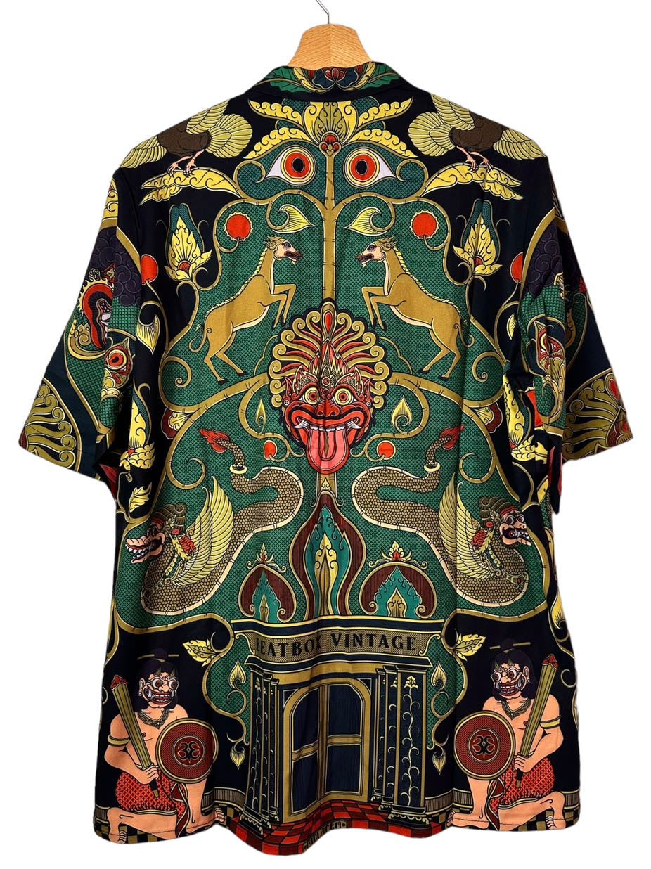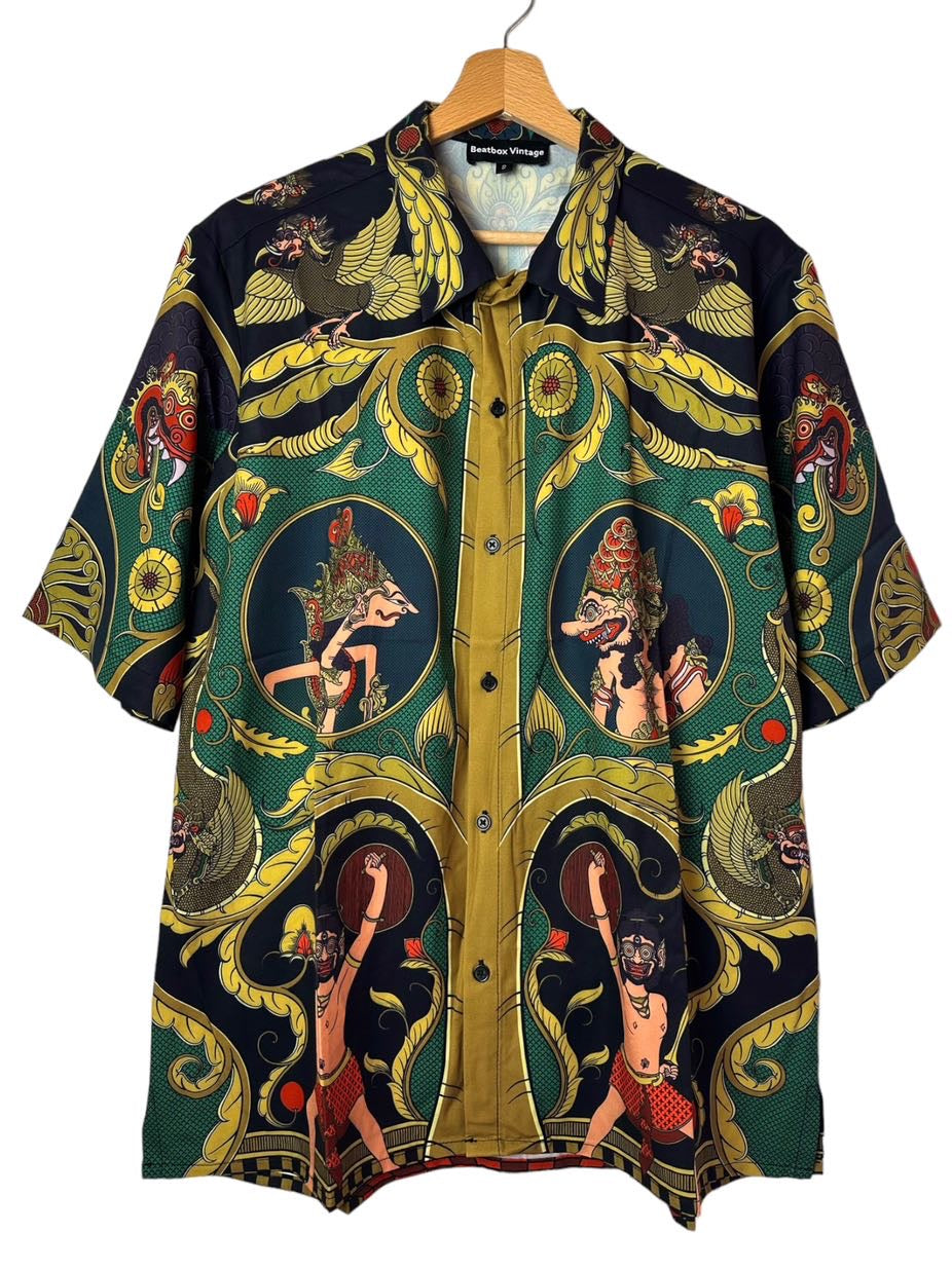 Vintage short -sleeved beatbox shirt with beautiful print designed by an Indonesian artist for us.